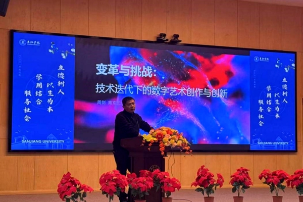 11月24日,艺术学院(演艺学院)联合科研处在学术报告厅成功举办《技术迭代下的数字艺术创作与创新》学术报告。本次讲座特邀南京艺术学院数字艺术学院院长周剑教授担任主讲。