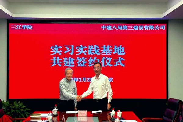 汤文成对中建八局三公司的热情接待表示感谢。他指出,中建八局三公司作为建筑行业标杆企业,拥有深厚的技术积累、丰富的工程经验和强烈的创新情怀,与三江学院的合作基础扎实、前景广阔。学校将以此次交流及签约为契机,充分发挥学科与人才优势,主动对接企业发展需求,深化校企协同创新,在科学研究、人才培养、产业孵化等领域实现更高层次的合作。同时,他表示,希望双方携手将合作成果转化应用到实践中,构建研发、应用、产业化闭环发展模式,实现互利共赢。